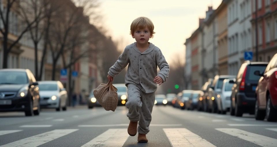 Dwulatek w piżamie przebiegł przez ruchliwą ulicę